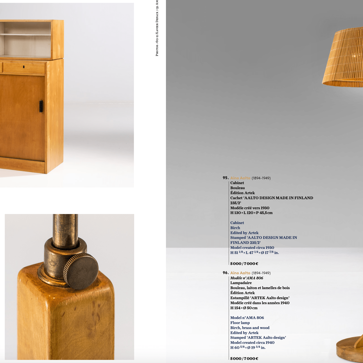 Katalogin sivut avautuivat edessäni kuin korut. Kuvat olivat elegantteja. Kuvakulmat oli harkittu kohde kerrallaan, esinetyypin, koon ja materiaalin mukaan. Kuvat detaljeista olivat aistikkaita. Ne kertoivat myös esineen arvon kannalta olennaiset yksityiskohdat. Arkistojen mustavalkokuvat loivat ajankuvaa ja veivät nostalgiamatkalle paikkoihin, joihin huutokaupan kohteet on aikanaan suunniteltu. Henkilökuvat muotoilijoista antoivat tekijöille kasvot. Sokerina pohjalla oli muutamia valokuvia valmistusprosesseista; kunnianosoituksia käsityölle, eri alojen ja tekniikoiden osaajien työpanokselle ja koko suomalaisen designin historialle.