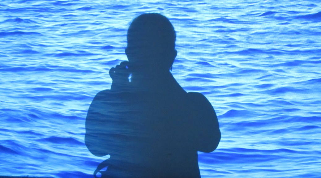 artikkelikuva: Tuija kuvaamassa teosta ”Walking with water”, taiteilija Vladimir Nikolić, Serbian paviljonki, Venetsian biennali 2022.